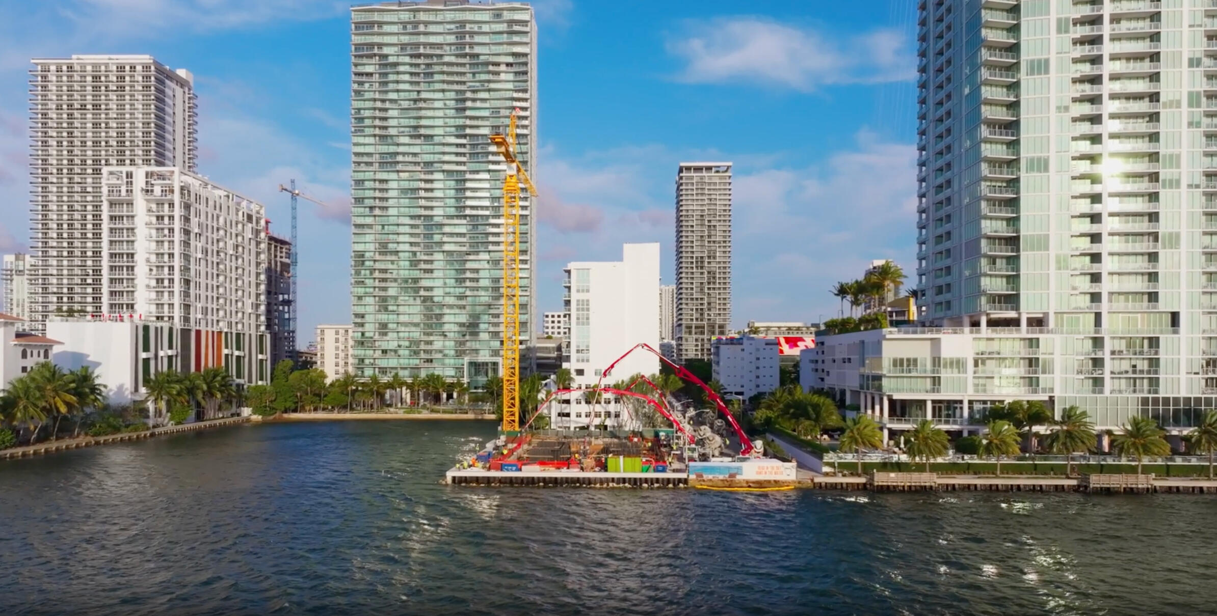 Moss Construction led the 14-hour pour that involved more than 3,400 cubic yards of concrete and 2,095 tons of steel to form the tower's foundation, further accelerating momentum on the 650-foot waterfront landmark rising in Miami's Edgewater