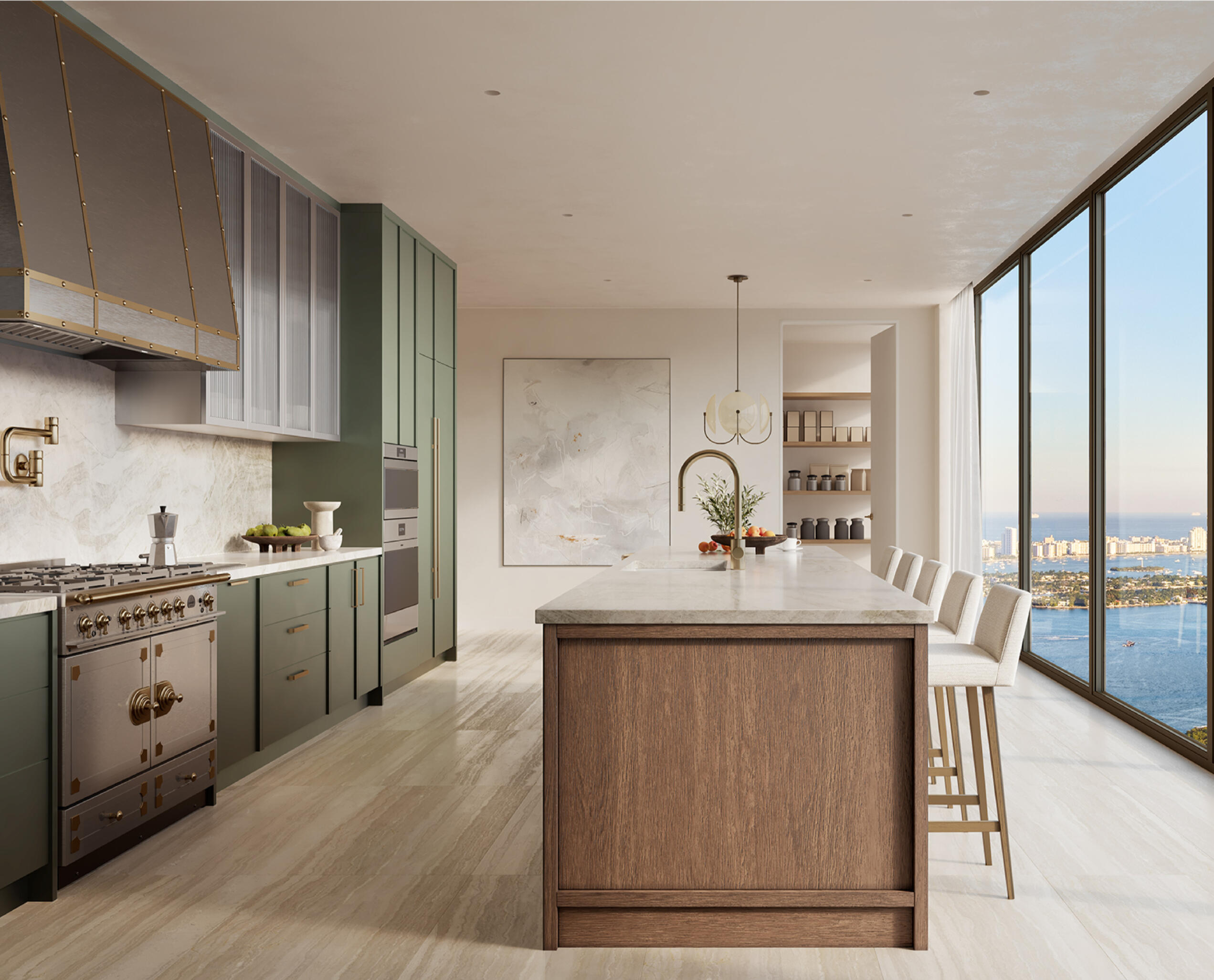 - Sweeping, panoramic views of Biscayne Bay and the Atlantic Ocean- Entry foyers open to expansive floor plans featuring 10-to-11-foot ceiling heights- Floor-to-ceiling energy windows throughout provide unobstructed views- Spacious sunrise and sunset terraces across every residence- Choice of wood or porcelain flooring complemented by custom millwork for doors, cabinets, and trim